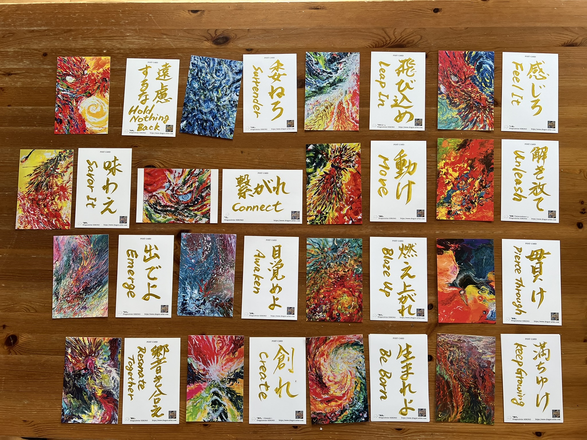 この交龍ポストカードは、龍のご縁の皆さんが集うコミュニティ「ドラゴンサロン」のメンバーの皆さんに、毎月召喚した龍画をポストカードにしてお送りしているものです
