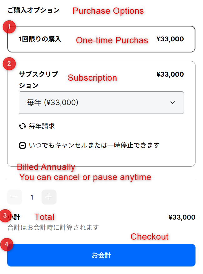 Because we’re using a Japanese payment system, parts of the checkout page are shown in Japanese.